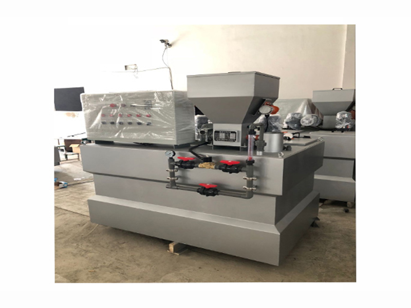 配制溶液從配制槽,經(jīng)熟化槽再進(jìn)入儲(chǔ)存槽,當(dāng)儲(chǔ)存槽液位處于高位時(shí),配制過程自動(dòng)停止,加藥液過程繼續(xù),當(dāng)溶液下降到中液位時(shí),重新自動(dòng)啟動(dòng)配料過程。配料槽和熟化槽均設(shè)置攪拌器,充分保證絮凝劑的稀釋和熟化。另外,儲(chǔ)存槽溶液不足時(shí)會(huì)觸及下液位報(bào)警系統(tǒng),所有系統(tǒng)均停止報(bào)警。本裝置是由具有自動(dòng)化程度高、性能穩(wěn)定、工作可靠菜單操作簡單等特點(diǎn)。